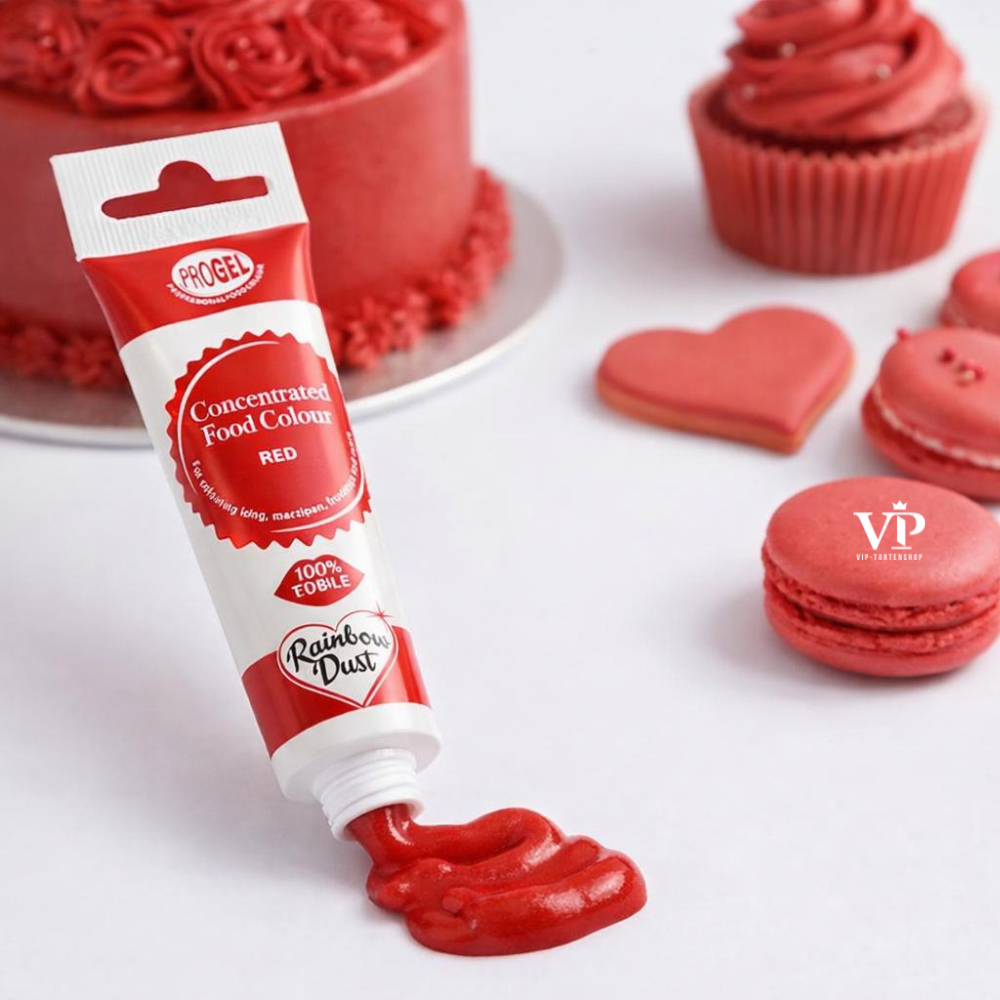 Hochkonzentriert Gelfarben von Rainbow Dust. Schon allein eine kleine Menge reicht, um Zuckerguss, Fondant, Marzipan, Biskuit und vielem mehr, eine intensive Farbe zu verleihen.