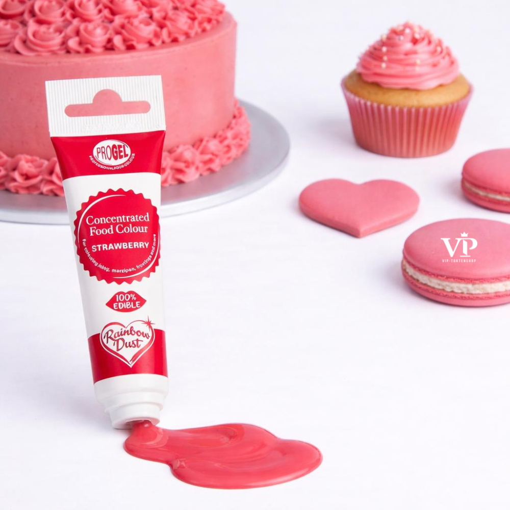 Hochkonzentriert Gelfarben von Rainbow Dust. Schon allein eine kleine Menge reicht, um Zuckerguss, Fondant, Marzipan, Biskuit und vielem mehr, eine intensive Farbe zu verleihen.