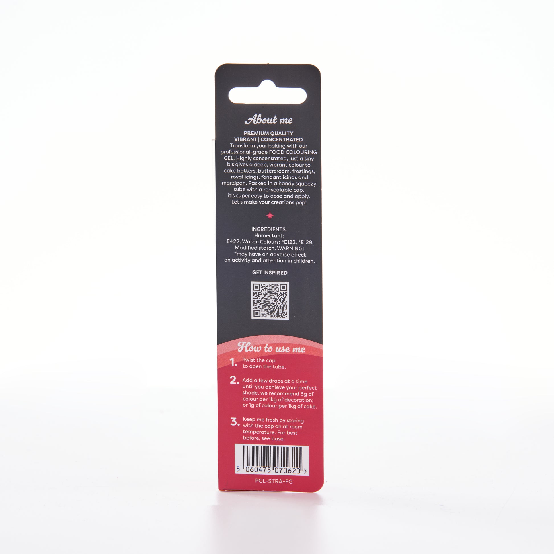 Zutaten: Feuchthaltemittel: E422, Wasser, Farben: *E122, *E129, modifizierte Stärke (Tapioka). Warnung: *E122, *E129 können die Aktivität und Aufmerksamkeit von Kindern beeinträchtigen.