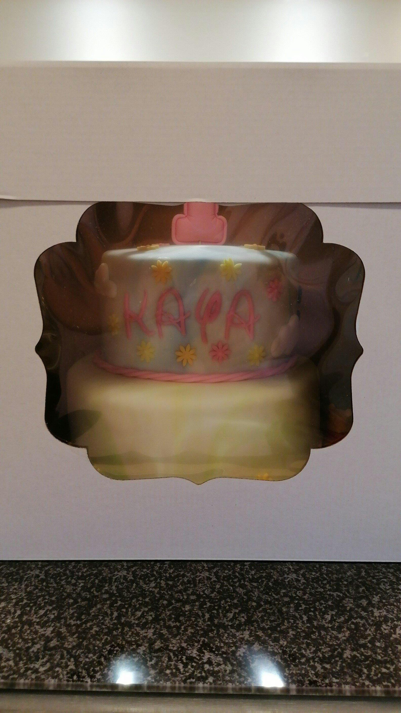 Achtung: Wir Empfehlen den Karton mit Torteninhalt von unten am Boden mit der Hand unterstützend zu tragen.
